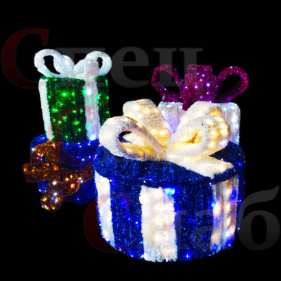 Доверьтесь профессионалам – закажите светодиодное украшение Разноцветные подарки сейчас и получите качественные изделия, которые соответствуют нормам безопасности и указанным характеристикам.